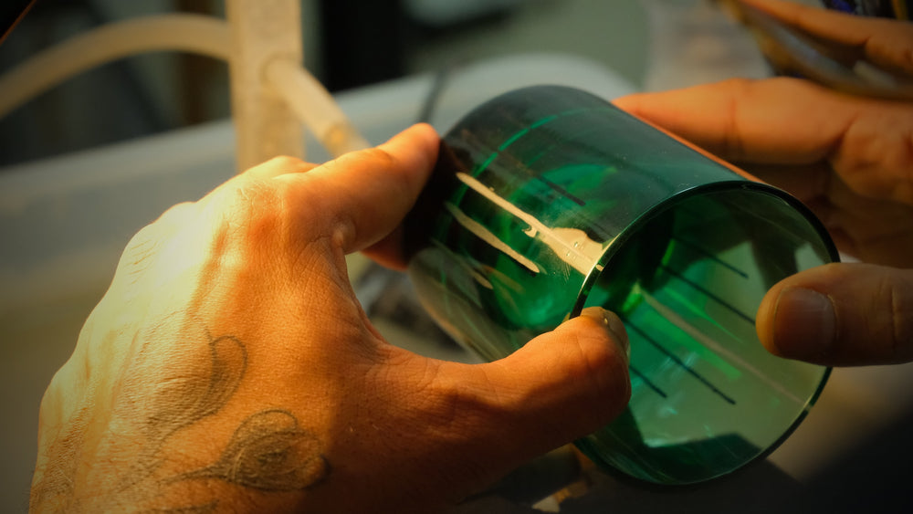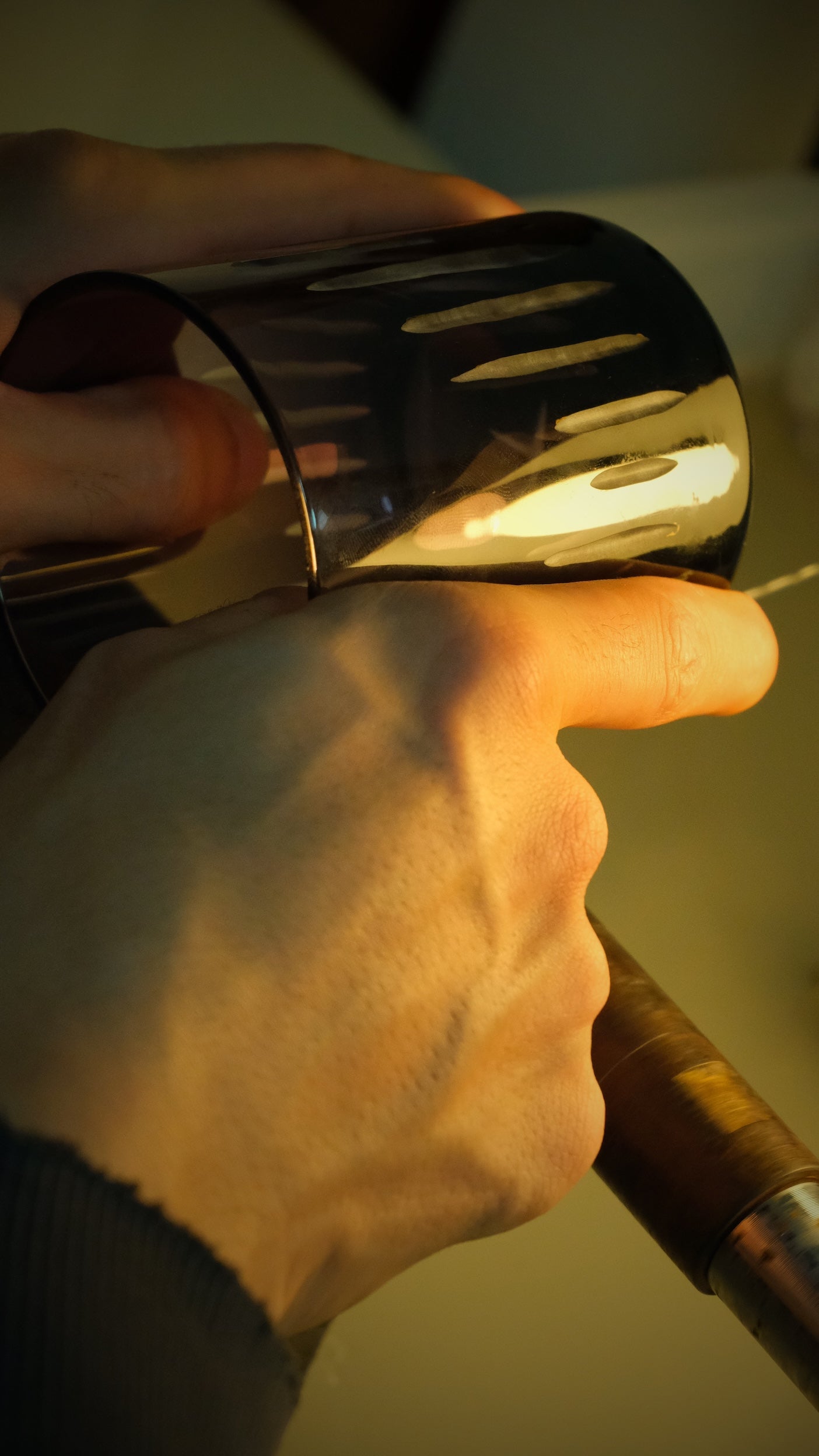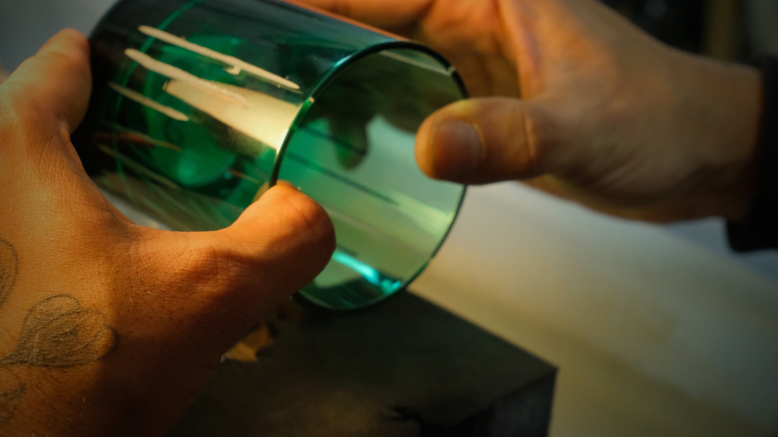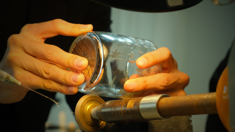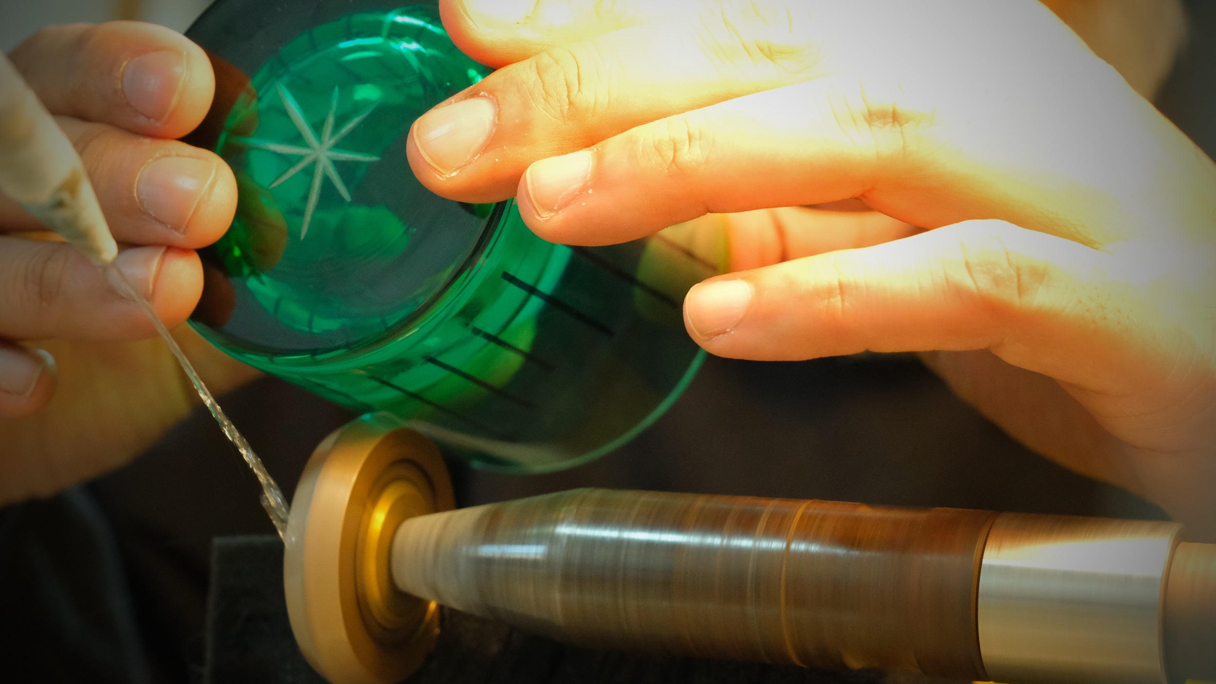 “We don’t blow the glass ourselves. We begin with the blank vessel. And then, using hand tools and old machinery... we begin to cut.”