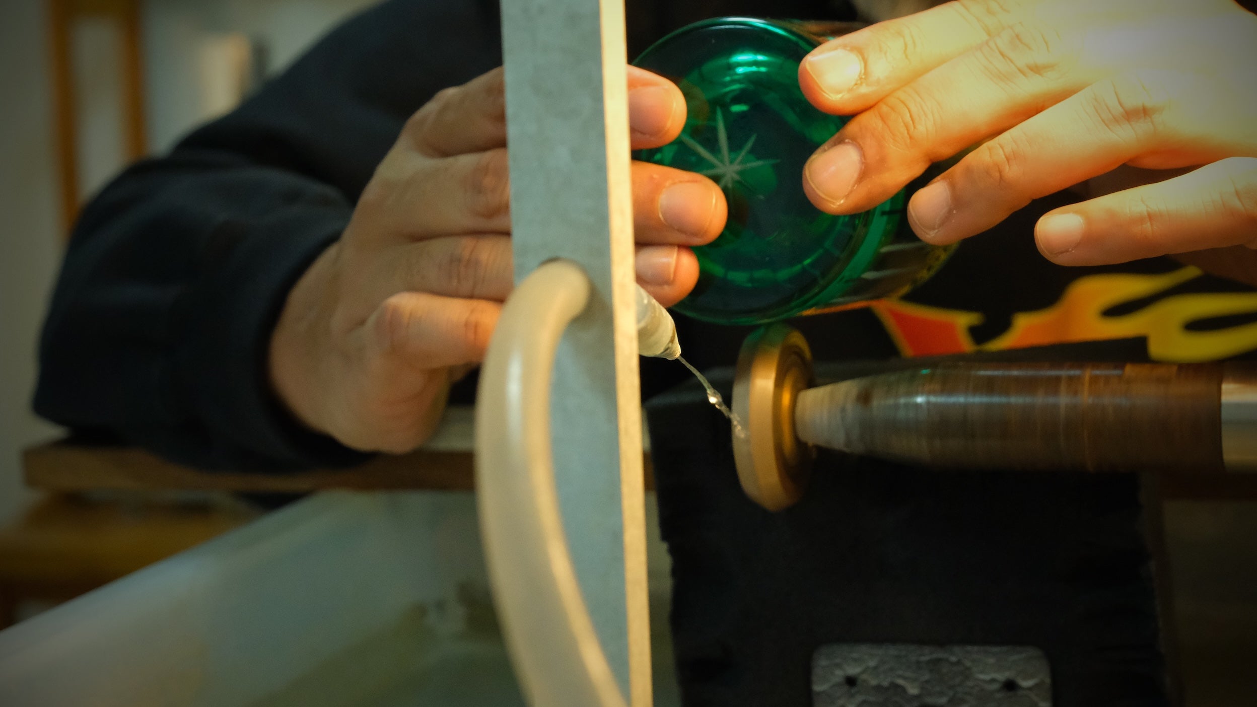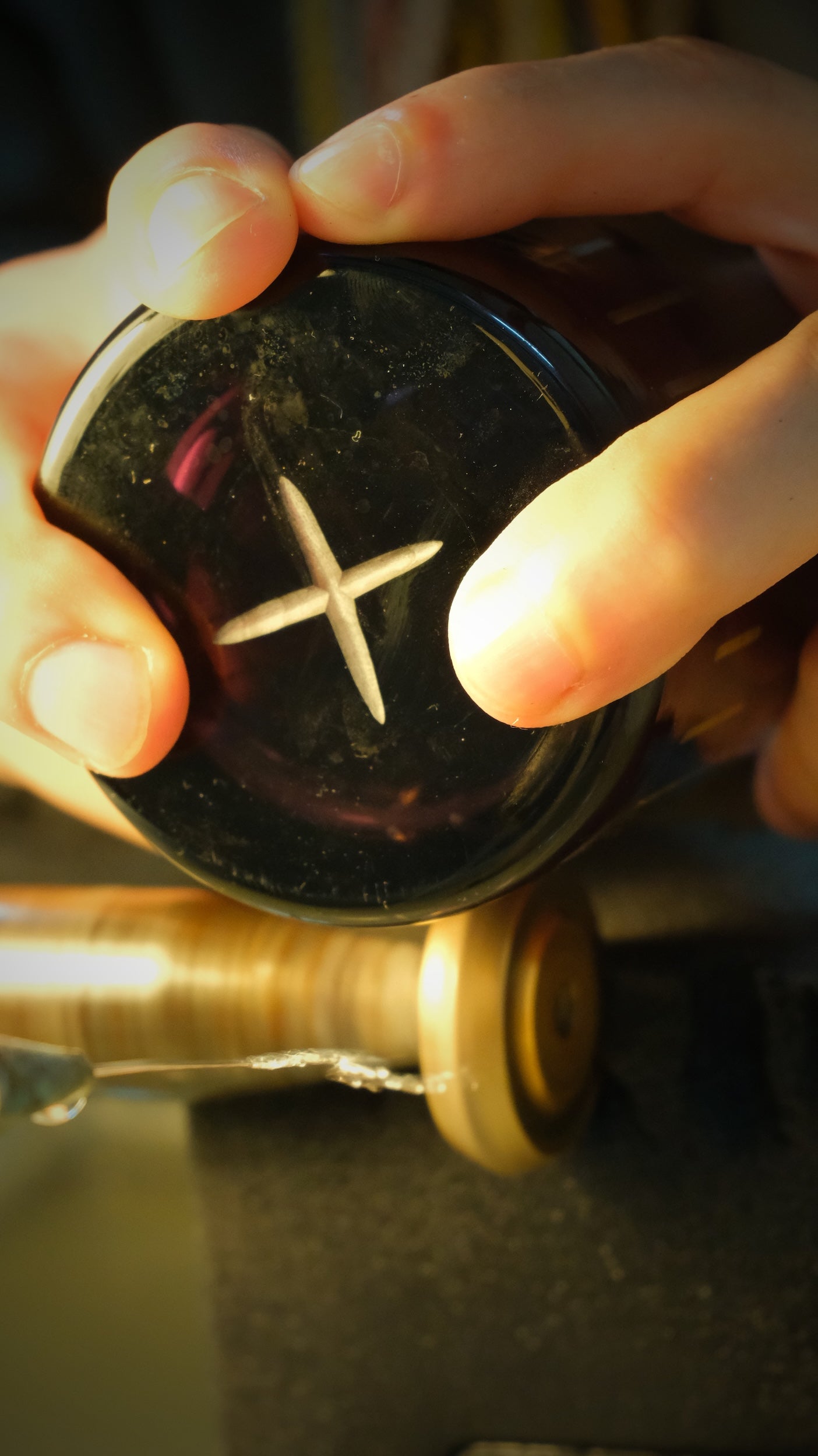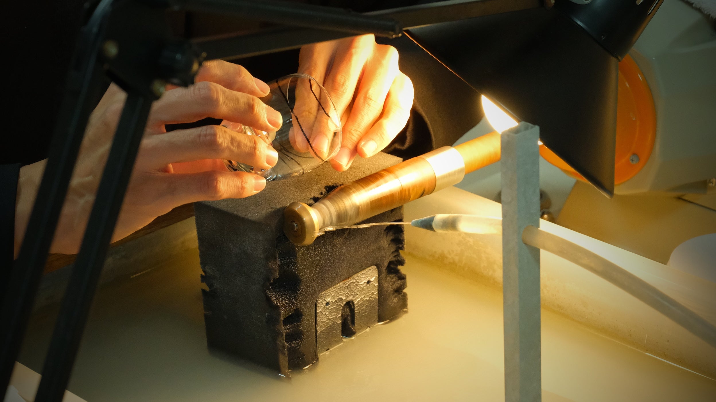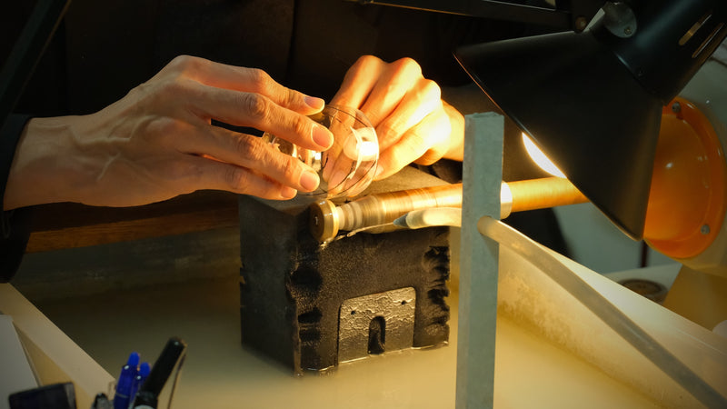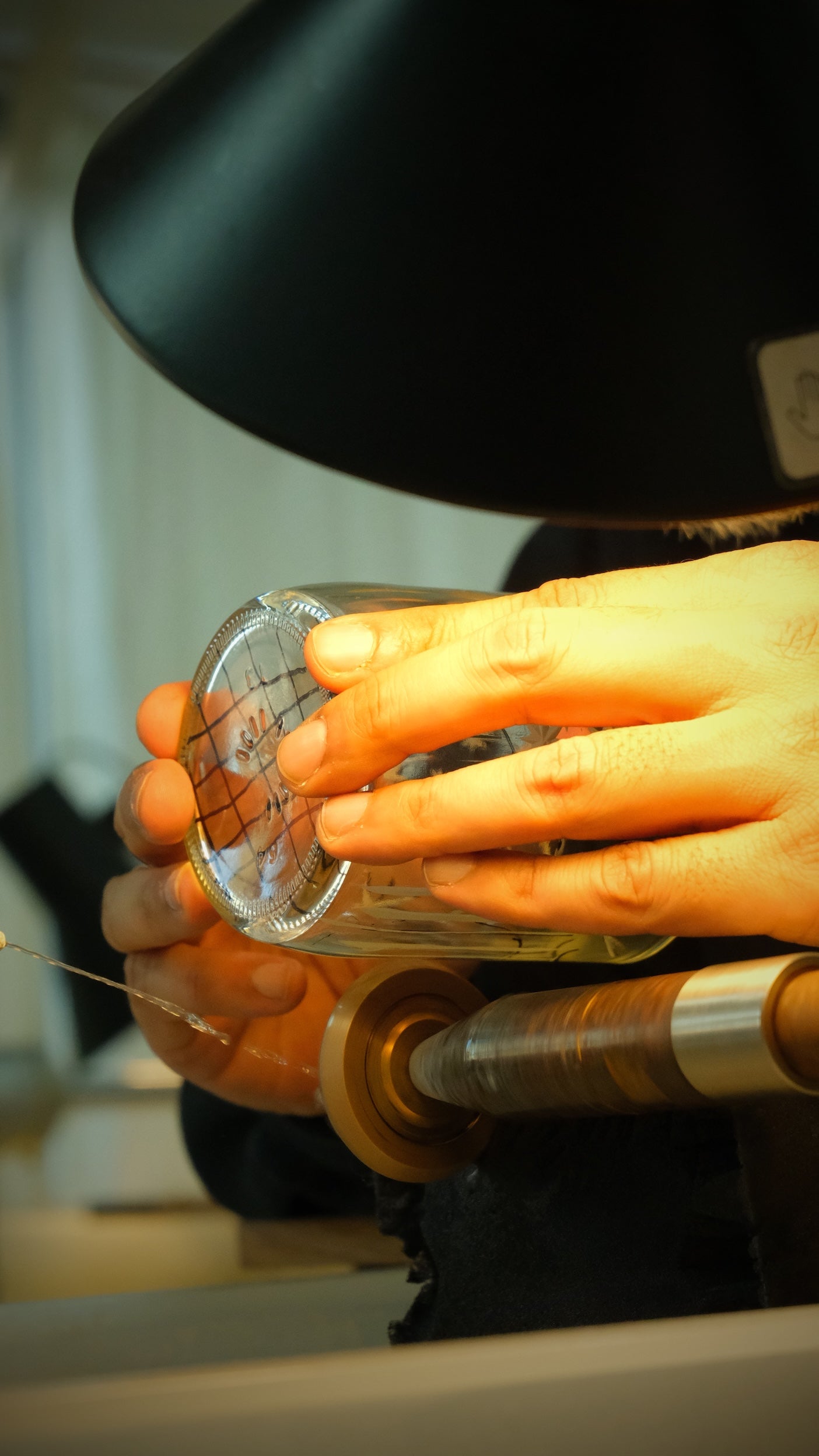 “We don’t blow the glass ourselves. We begin with the blank vessel. And then, using hand tools and old machinery... we begin to cut.”