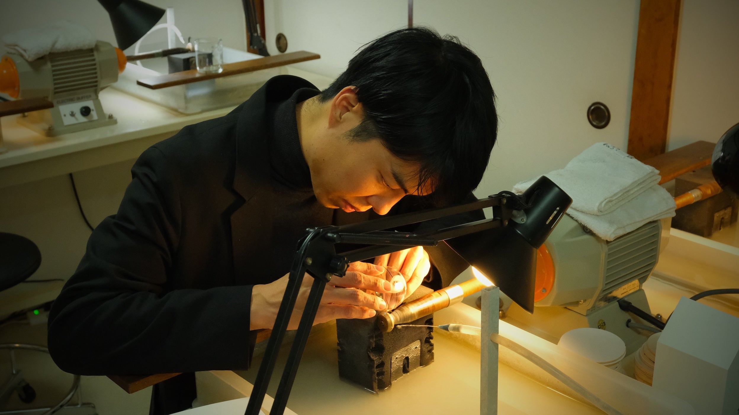 What makes his work distinct is the way he reinterprets hanakiriko—a floral motif popular during the Taishō era—infusing it with contemporary sensibilities. Rather than treating the design as fixed, he uses it as a foundation for invention, rearranging the cuts with a sense of rhythm and individuality. “Design is still where the craftsman can show originality,” he says. “Even when using traditional patterns, the placement, the scale, the balance—those choices are ours.”