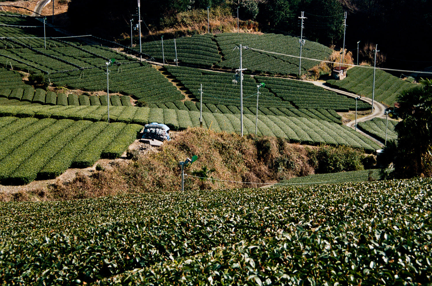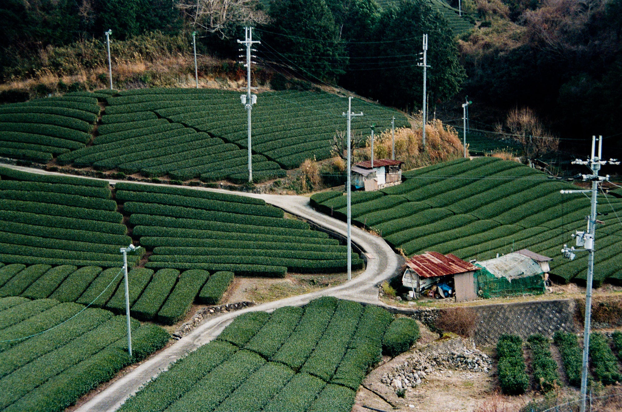 Later, Hisamitsu led us to an overlook perched above the terraced hills. From there, the geometry of the landscape became unmistakable—perfect rows carved into slopes that seemed almost too steep to stand on. He explained how each angle was deliberate, designed to optimize sunlight and airflow while protecting the plants from heavy rains. Farmers had shaped and reshaped these hills for centuries, not through force but through collaboration with the land. It was humbling to realize that every cup of matcha begins with thousands of such quiet decisions, made long before the leaves ever reach a millstone.
