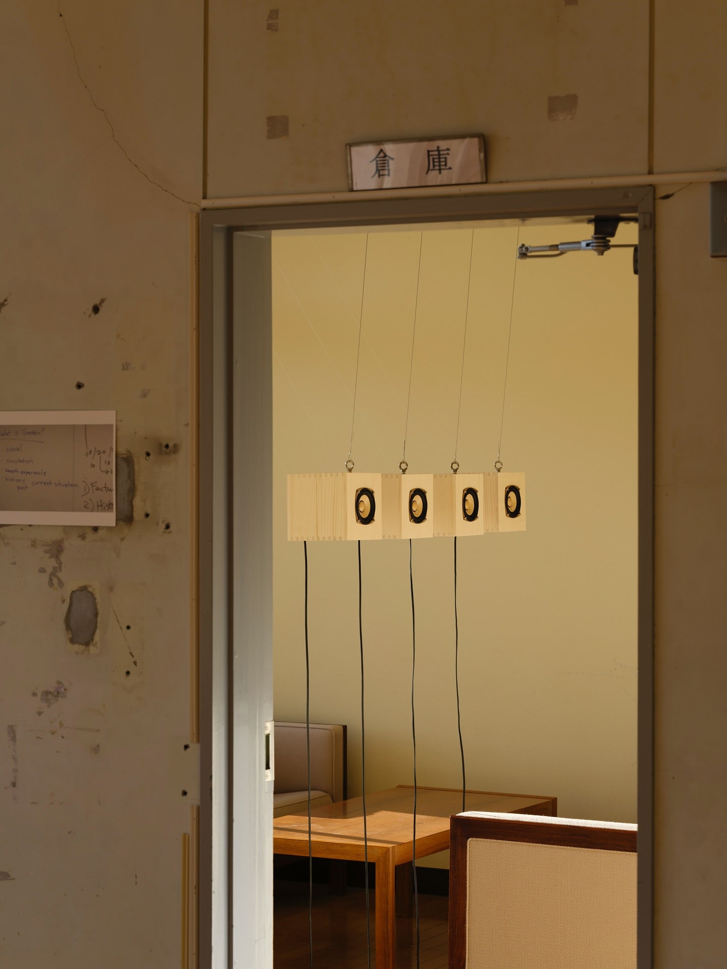 Hosoi is attentive to how listeners navigate sound, both physically and emotionally. As voices circulate, the body becomes a site of perception, responding to vibration rather than melody. The work encourages slow movement, quiet observation, and an awareness of how sound inhabits the listener as much as the room.