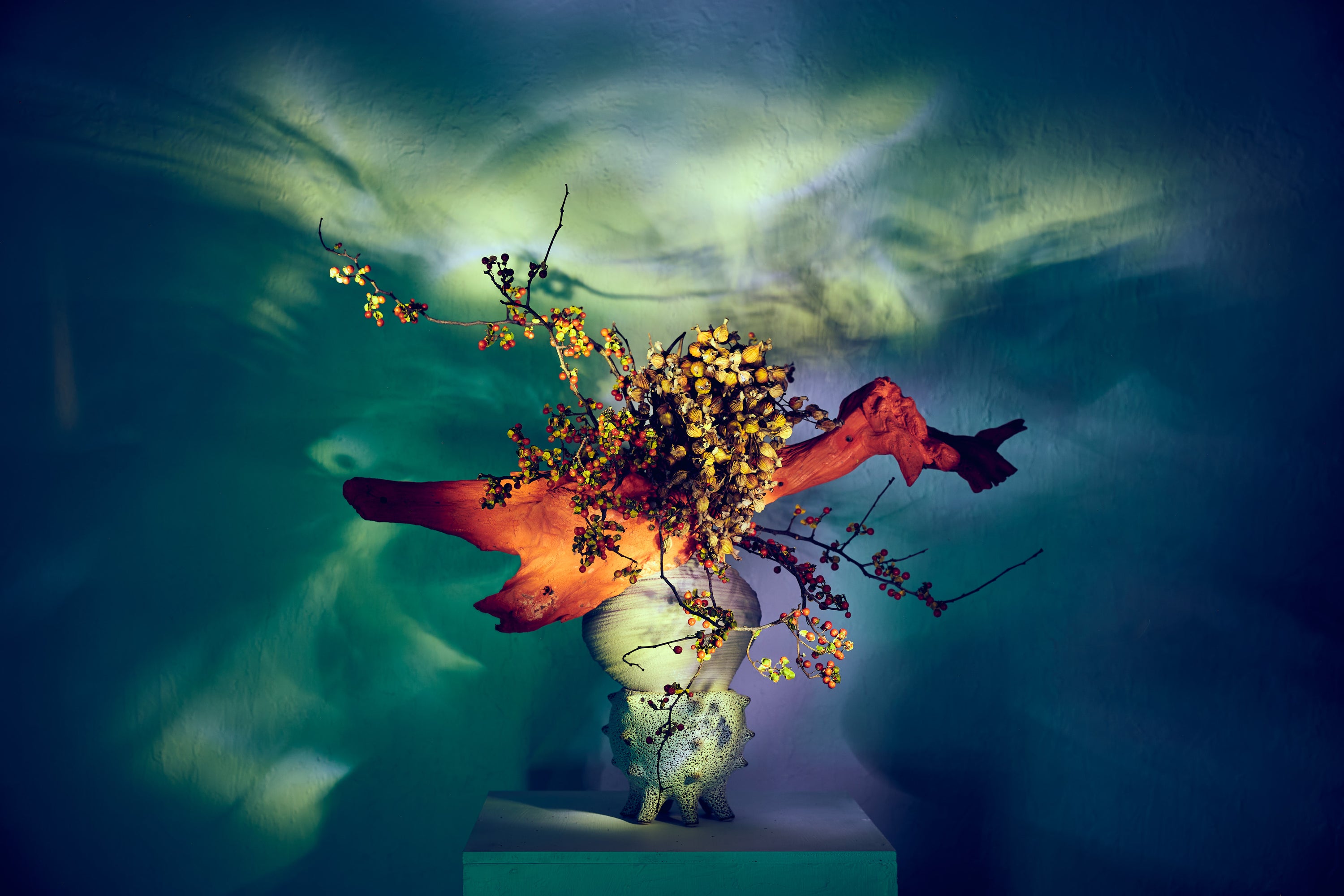 Ultimately, winter arrangements are exercises in mindfulness. They demand presence, patience, and responsiveness—qualities that permeate all of Ozono’s work. Through ikebana, he cultivates a sensitivity to fleeting beauty, reminding viewers that power and meaning are often found in the quiet, understated moments. In these restrained compositions, the season’s silence is not emptiness—it is space for reflection, contemplation, and the subtle poetry of being.