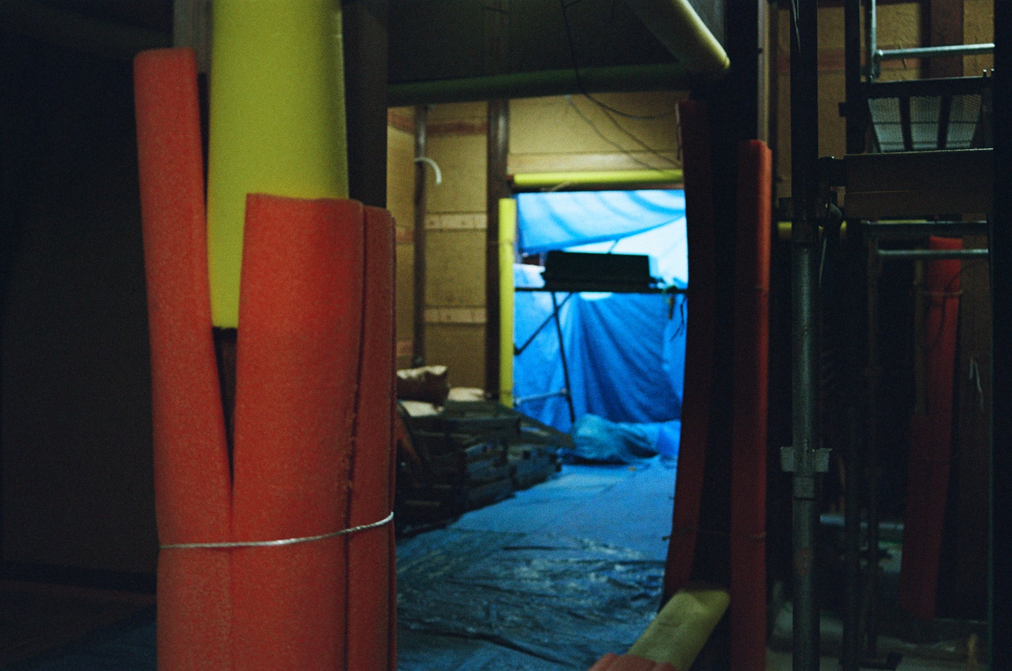 Now, on this rainy afternoon, we are stepping into the first newly constructed machiya home built in Kyoto in more than ninety years. The frame is still exposed. The scent of hinoki cedar floats in the air. The beams rise from the earth like calligraphy in progress.